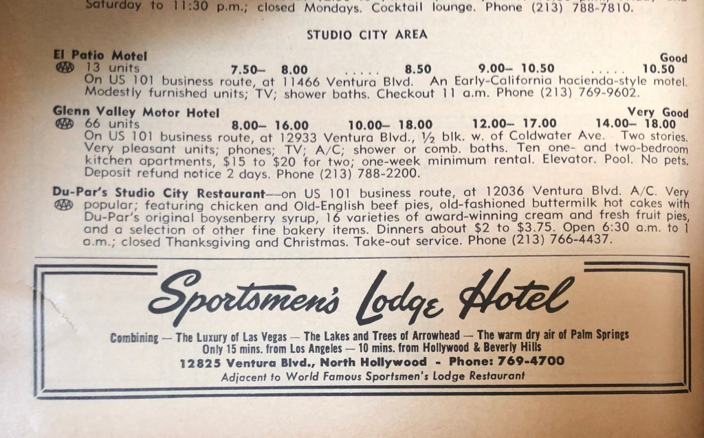 The Sportsmen’s Lodge is still there. According to its website, it is “The Soul of Iconic Hollywood.”