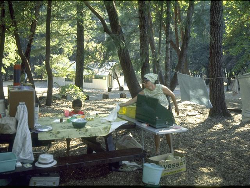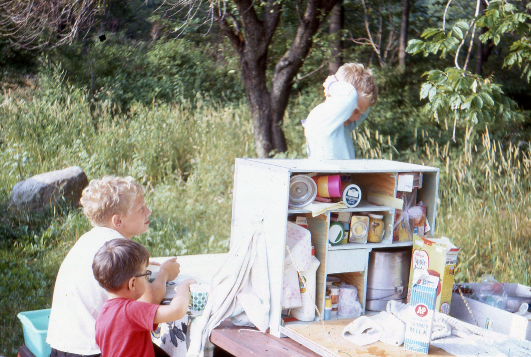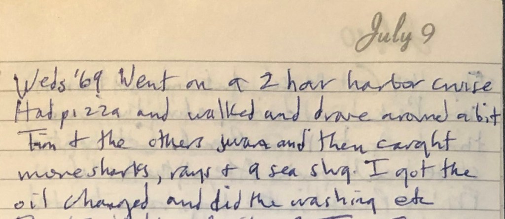 Started about 10 again. Had breakfast โoutโ but then a tailgate picnic for lunch. Went through a lot of rain in Indiana. Stopped at Bauerโs Bonanza in Smithboro, IL about 5 and swam & fished and cooked out. Cleared and was lovely evening. Called Jim and Momma.