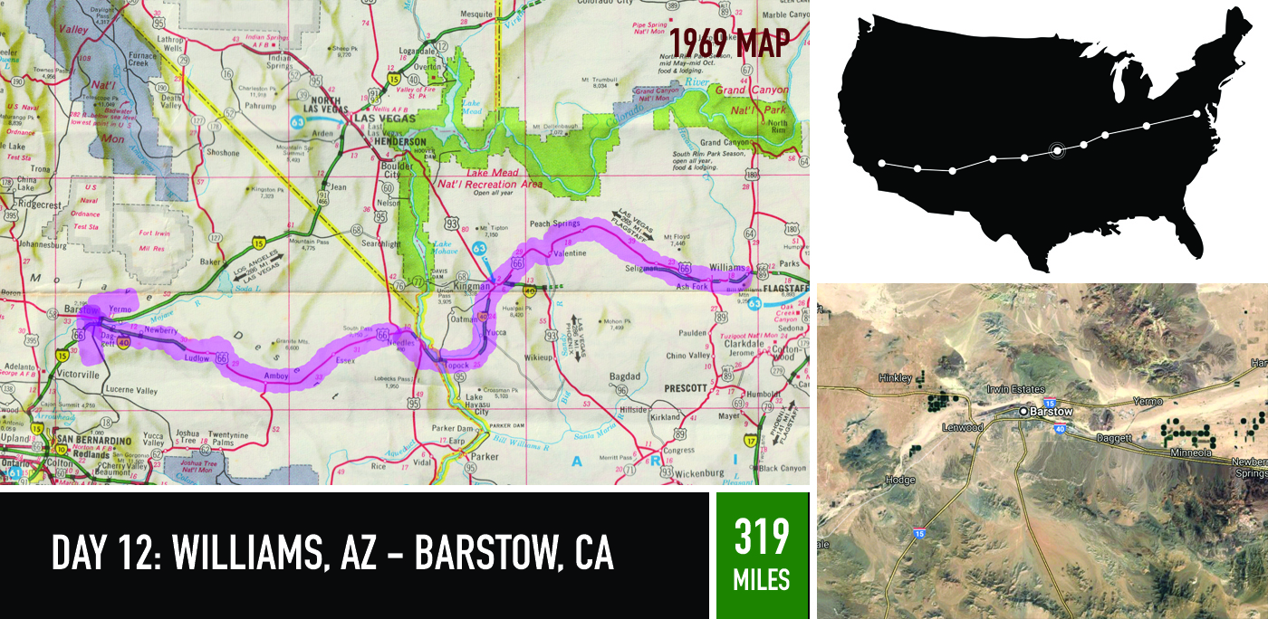 In revisiting Barstow for this 1969 travelogue, I have to admire that it was an original crossroads of the interstate system — Interstates 15 and 40, nee Rte 66 — as well as the gateway to the Mojave Desert and a number of military installations. Next time I pass through, I’ll let myself wax nostalgic for the place that treated Mom and her boys nice, if even for a night. But I probably won’t stop.