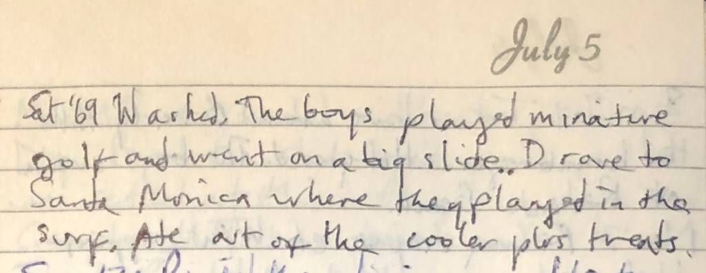 In her diary, Mom seems to cluster Mike and me together in many situations. Even though he was eight and I was four, Mom referred to us as “the little guys” in one entry. We swam while Tim fished. While Tim fished we swam. And on and on.
